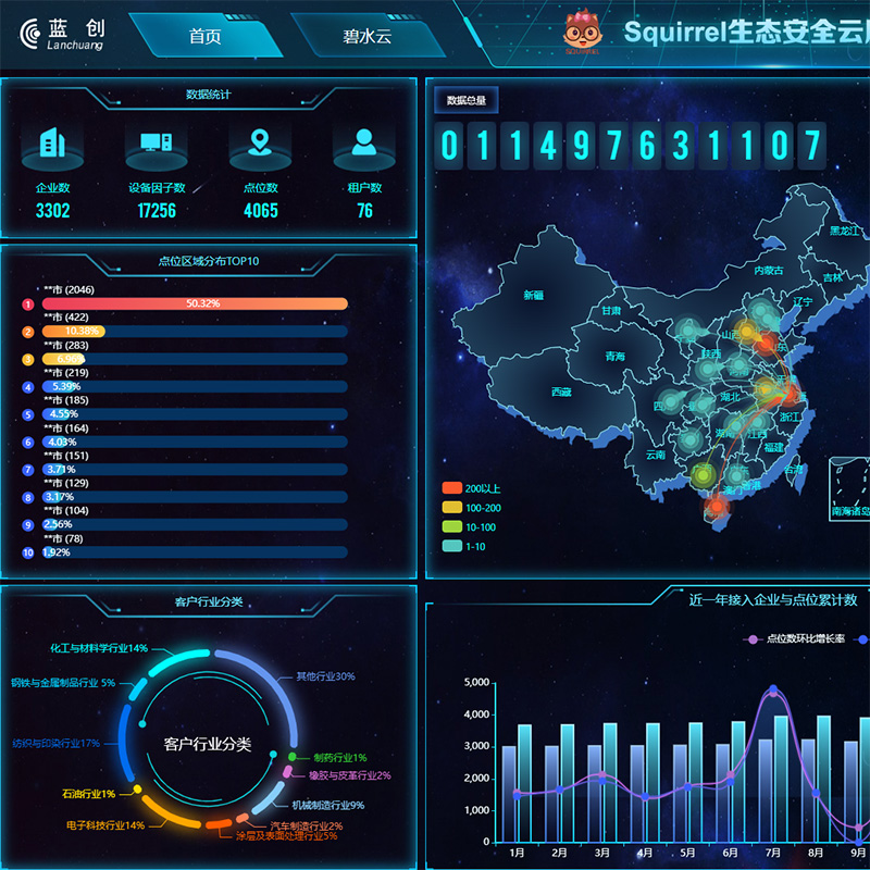 餐飲油煙在線監(jiān)控、柴油車OBD遠程在線監(jiān)控、企業(yè)安全生產(chǎn)信息化等系統(tǒng)于一體,通過AI數(shù)據(jù)模型對海量生態(tài)安全數(shù)據(jù)進行挖掘,為生態(tài)環(huán)境監(jiān)管部門、應急管理部門、